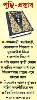রাজ্যপালদের নিয়োগ ও ভূমিকা নিয়ে একগুচ্ছ প্রস্তাব ছিল মনমোহন জমানায় গঠিত মদনমোহন পুঞ্ছি কমিশনের রিপোর্টে। রাজ্যপাল নিয়োগে মুখ্যমন্ত্রীদের মতামত নেওয়া, পাঁচ বছরের স্থায়ী মেয়াদ বেঁধে দেওয়া, রাজ্যপালদের বিশ্ববিদ্যালয়ের আচার্য পদে বসানোর প্রথা তুলে দেওয়ার মতো বেশ কিছু প্রস্তাব রয়েছে তাতে। ওই সুপারিশ খতিয়ে দেখে কার্যকর করার জন্য কমিটিও গড়েছেন মোদী। যা নিয়ে আবার আপত্তি তুলেছেন মমতা বন্দ্যোপাধ্যায়। তবে বিশেষজ্ঞদের একাংশ আশাবাদী, অরুণাচল নিয়ে সুপ্রিম কোর্টের সাম্প্রতিক রায়ের পরে রাজ্যপালরা আপাতত রাজ্যের নির্বাচিত সরকারের বিরুদ্ধে সক্রিয় হবেন না। তাঁদের ভূমিকা সার্থক হবে রাজনীতির ঊর্ধ্বে উঠলেই।