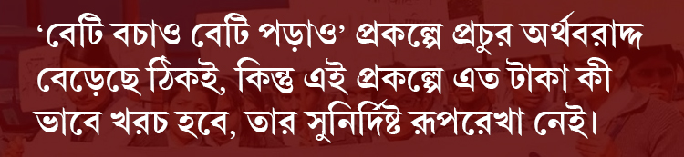 এ বার আসি দ্বিতীয় প্রশ্নে। অর্ধেক ভারতবাসী, নারী ভারতবাসীর জন্য সরকার কতটা চিন্তিত? জেন্ডার-বাজেটিং-এর তথ্য বলে, গত বছরের তুলনায় ২০১৭-তে নারীকেন্দ্রিক অর্থবরাদ্দ বেড়েছে ১৭ শতাংশ, যা মূল্যবৃদ্ধি দিয়ে সাযুজ্য আনলে হয় ১১ শতাংশ। প্রথমেই আসি ‘বেটি বচাও বেটি পড়াও’ প্রকল্পে। প্রচুর অর্থ বরাদ্দ বেড়েছে ঠিকই, কিন্তু আশ্চর্যের কথা, এই প্রকল্পে এত টাকা কী ভাবে খরচ হবে, তার কোনও সুনির্দিষ্ট রূপরেখা নেই। গত বাজেটে অর্থমন্ত্রী ‘মহিলা শক্তি কেন্দ্র’ স্থাপনের কথা বলেছিলেন। এর আওতায় থাকা ১৪ লক্ষ অঙ্গনওয়াড়ি কেন্দ্রের জন্য বরাদ্দ হয় ৫০০ কোটি টাকা। অর্থাৎ, প্রতি কেন্দ্রের জন্য ৩৫৭১ টাকা সাকুল্যে। তাতে ঠিক কী ধরনের বিকাশ ঘটানো সম্ভব সেটা বোঝা দুষ্কর।