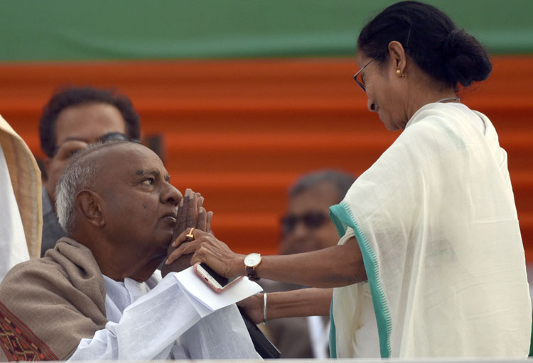 সলতেটা অনেক দিন ধরেই পাকানো হচ্ছিল। দেশজোড়া বিরোধী ঐক্যের ছবিটা সাম্প্রতিক কালে সবচেয়ে স্পষ্ট করে প্রথম বারের জন্য তুলে ধরল যে সমাবেশ, সেই সমাবেশ সলতেটায় শিখার সঞ্চারও করল এ বার। আর তার সুবাদেই বাংলার মুখ্যমন্ত্রী তথা তৃণমূলের চেয়ারপার্সন মমতা বন্দ্যোপাধ্যায় উজ্জ্বল হয়ে উঠলেন জাতীয় রাজনীতির আলোয়।