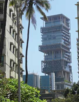 দক্ষিণ মুম্বইয়ের একতলা-দোতলা বস্তি দেখতে দেখতে যখন এক ঝলক স্বচ্ছ বাতাসের জন্য আকাশের দিকে তাকালেই নাকের ডগায় ইম্পিরিয়াল টাওয়ারের যমজ কোণাকৃতি মাথা দুটো ধাক্কা খেত তখন মনে হত ভূমিকম্প কেন আসে না। কিন্তু এ বাড়ি তো ভূমিকম্পে পড়ে যাওয়ার মতো বাড়ি নয়—এ তো অ্যান্টিলিয়া অম্বানী এম্পায়ারের প্রাসাদ! রিখটার স্কেলের আট রিখটার পর্যন্ত কম্পন সহ্য করার ক্ষমতা রাখে।
