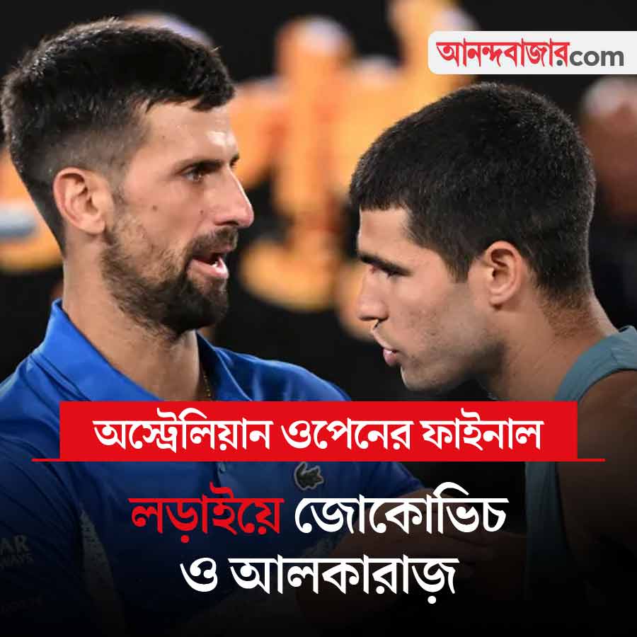 বছরের প্রথম গ্র্যান্ড স্ল্যাম অস্ট্রেলিয়ান ওপেনের ট্রফি কার হাতে উঠবে, জানা যাবে আজ। ফাইনালে লড়াই নোভাক জোকোভিচ ও কার্লোস আলকারাজ়ের। সেমিফাইনালে দু’জনেই পাঁচ সেটের লড়াইয়ে জিতেছেন। শীর্ষ বাছাই আলকারাজ় হারিয়েছেন তৃতীয় বাছাই আলেকজান্ডার জ়েরেভকে। এই ম্যাচে পাঁচ সেটের মধ্যে তিনটিরই ফয়শালা হয়েছে টাই ব্রেকারে। চতুর্থ বাছাই জোকোভিচ হারিয়েছেন দ্বিতীয় বাছাই জানিক সিনারকে। আজ কি ২৫তম গ্র্যান্ড স্ল্যাম জিতবেন জোকার? নাকি তাঁকে হারিয়ে প্রথম বারের জন্য অস্ট্রেলিয়ান ওপেন জিতবেন আলকারাজ়? খেলা শুরু দুপুর ২টো থেকে। খেলা দেখা যাবে সোনি স্পোর্টস চ্যানেল ও সোনিলিভ অ্যাপে।