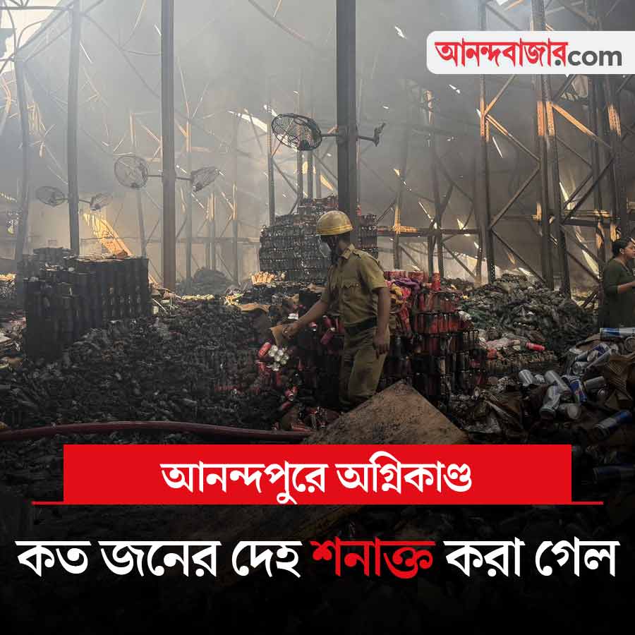 অগ্নিকাণ্ডের সেই রাতে আনন্দপুরের গুদামে থাকা ২৭ জনের এখনও খোঁজ মেলেনি। শনিবার পর্যন্ত ঘটনাস্থল থেকে ২৭টি দেহাংশ উদ্ধার হয়েছে। তবে মৃতের সংখ্যা ঠিক কত, তা এখনও স্পষ্ট নয়। উদ্ধার হওয়া দেহাংশগুলি ফরেনসিক পরীক্ষার জন্য পাঠানো হয়েছে। নিখোঁজদের পরিজনদের সঙ্গে দেহাংশগুলির ডিএনএ এবং রক্তের নমুনা মিলিয়ে দেখা হবে। মৃতদের শনাক্ত করা সম্ভব হলে সংশ্লিষ্ট পরিবারের হাতে তুলে দেওয়া হবে দেহাংশ। বারুইপুর পুলিশ জেলার সুপার শুভেন্দ্র কুমার জানিয়েছেন, যত দ্রুত সম্ভব হয় এই কাজ সেরে ফেলার চেষ্টা করা হচ্ছে।