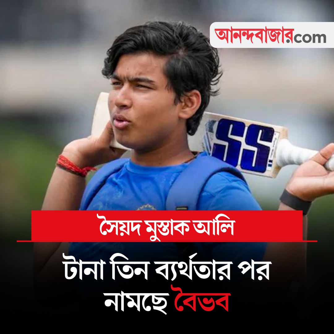 ইডেনে সৈয়দ মুস্তাক আলি ট্রফির তিনটি ম্যাচ খেলেছে বৈভব সূর্যবংশী। তিনটিতেই ব্যর্থ হয়েছে সে। তার ব্যাট থেকে বড় রান দেখার অপেক্ষায় রয়েছেন সমর্থকেরা। মঙ্গলবার আবার নামবে বৈভব। বিহারের প্রতিপক্ষ মহারাষ্ট্র। খেলা শুরু সকাল ১১টা থেকে।