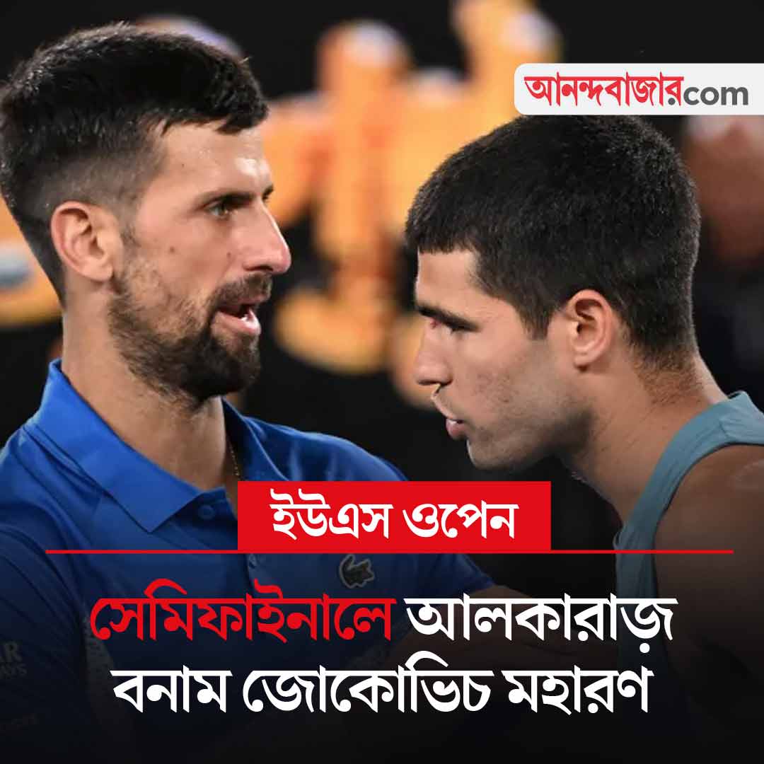 আজ জানা যাবে এ বারের ইউএস ওপেনের প্রথম ফাইনালিস্ট। পুরুষদের সিঙ্গলসের প্রথম সেমিফাইনালে মহারণ। লড়াই দ্বিতীয় বাছাই কার্লোস আলকারাজ় ও সপ্তম বাছাই নোভাক জোকোভিচের। খেলা রাত ১২:৩০ থেকে। দ্বিতীয় সেমিফাইনাল কাল ভোর ৪:৩০ থেকে। মুখোমুখি শীর্ষ বাছাই ইয়ানিক সিনার ও ২৫ নম্বর বাছাই ফেলিক্স অগার আলিয়াসিমে। দু’টি ম্যাচই দেখা যাবে স্টার স্পোর্টস চ্যানেল ও জিয়োহটস্টার অ্যাপে।