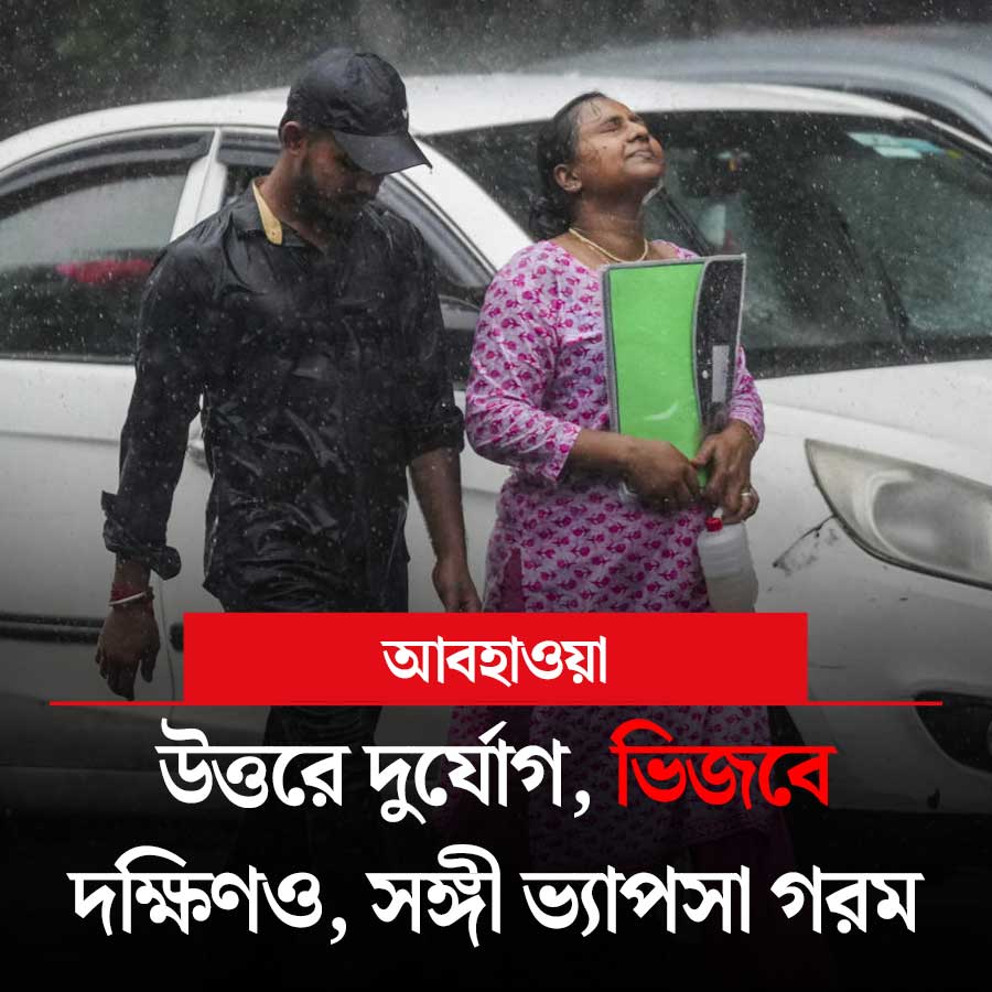আগামী শনিবার পর্যন্ত কলকাতা-সহ দক্ষিণবঙ্গের সব জেলায় হালকা থেকে মাঝারি বৃষ্টির পূর্বাভাস রয়েছে। কোনও কোনও জেলায় বৃষ্টির পাশাপাশি ঘণ্টায় ৩০ থেকে ৪০ কিলোমিটার গতিতে দমকা ঝোড়ো হাওয়া বইতে পারে। সোমবার জলপাইগুড়ি, কালিম্পং, আলিপুরদুয়ারে ভারী থেকে অতি ভারী (৭ থেকে ২০ সেন্টিমিটার) বৃষ্টির জন্য কমলা সতর্কতা জারি করা হয়েছে। দার্জিলিং এবং কোচবিহারে রয়েছে ভারী (৭ থেকে ১১ সেন্টিমিটার) বৃষ্টির সতর্কতা। বৃষ্টি থামলেই দক্ষিণে ভ্যাপসা গরম ভোগাবে।