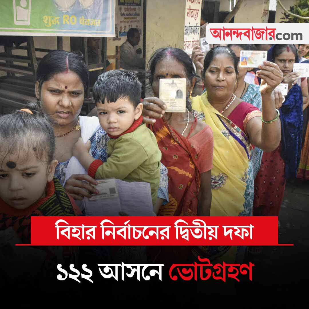 আজ বিহারে দ্বিতীয় দফার ভোটগ্রহণ রয়েছে। আজ ভোটগ্রহণ হবে ১২২টি আসনে। তালিকায় রয়েছে পূর্ব এবং পশ্চিম চম্পারন, সীতামঢ়ী, মধুবনী, কিসানগঞ্জের মতো নেপাল সীমান্তবর্তী বিধানসভা কেন্দ্রগুলি। দ্বিতীয় দফায় মোট প্রার্থী রয়েছেন ১৩০২ জন। ভোটার সংখ্যা সাড়ে তিন কোটিরও বেশি। দ্বিতীয় দফার এই নির্বাচনের দিকে নজর থাকবে আজ।