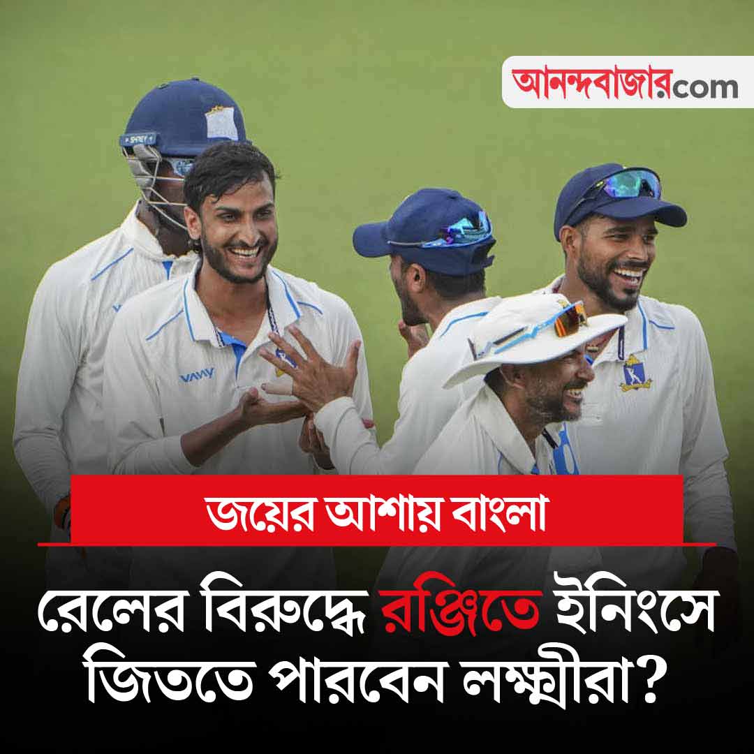 রঞ্জি ট্রফিতে জেতার মতো জায়গায় চলে গিয়েছে বাংলা। প্রথম ইনিংসে ৪৭৪ রান করার পর রেলের ইনিংস ২২২ রানে শেষ করে দিয়েছে বাংলা। ফলো-অন করতে নেমে রেল ৯০ রান তুলতেই ৫ উইকেট হারিয়েছে। ইনিংস হার এড়াতে এখনও ১৬২ রান দরকার তাদের। অঘটন না ঘটলে ইনিংসেই জিতে যেতে পারে লক্ষ্মীরতন শুক্লার দল। আজ চতুর্থ তথা শেষ দিনের খেলা শুরু সকাল ৯:৩০ থেকে।