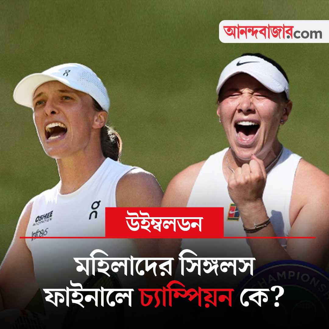 উইম্বলডনে আজ মহিলাদের ফাইনাল। মুখোমুখি অষ্টম বাছাই ইগা সিয়নটেক ও ১৩ নম্বর বাছাই অ্যামান্ডা আনিসিমোভা। শীর্ষ বাছাই ও বিশ্বের এক নম্বর আরিনা সাবালেঙ্কাকে হারিয়ে বড় অঘটন ঘটিয়েছেন আনিসিমোভা। ফাইনাল শুরু সন্ধ্যা ৬টায়। খেলা দেখা যাবে স্টার স্পোর্টস চ্যানেল ও জিয়োহটস্টার অ্যাপে।