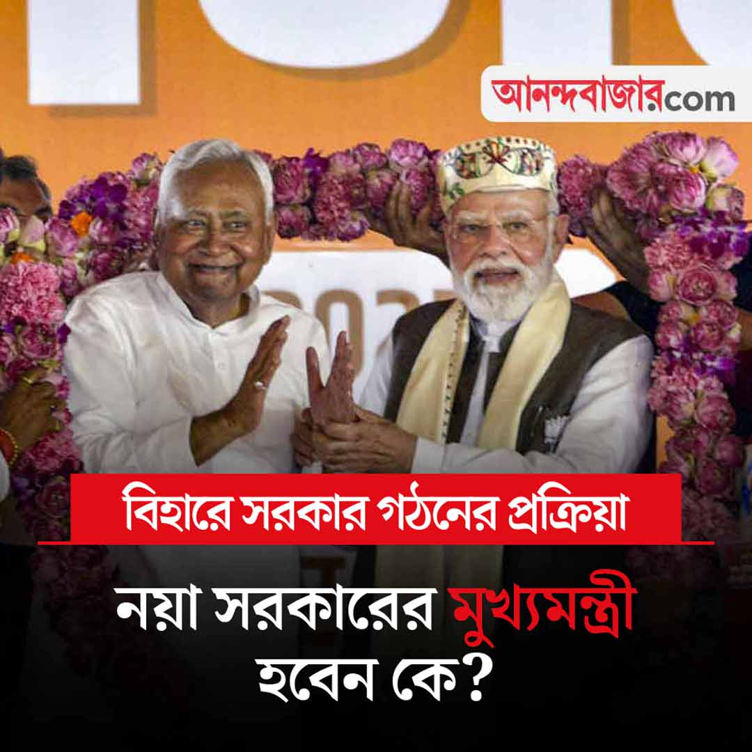 বিহারের বিধানসভা ভোটে একতরফা ভাবে জয়ী হয়েছে এনডিএ। ধারেকাছে ঘেঁষতে পারেনি বিরোধীদের ‘মহাগঠবন্ধন’। জয়ের পরে এনডিএ শিবির ফের এক বার সরকার গঠনের তোড়জোড় শুরু করে দিয়েছে। তবে এ বারের নির্বাচনে এনডিএ শিবির আগে থেকে কোনও মুখ্যমন্ত্রীর মুখ ঘোষণা করেনি। সে ক্ষেত্রে নীতীশ কুমারই কি ফের নয়া সরকারের মুখ্যমন্ত্রী হবেন? তা নিয়েও বিস্তর আলোচনা শুরু হয়েছে। শুক্রবার বিকেলেই নীতীশের বাসভবনে গিয়েছিলেন বিহারের বিদায়ী উপমুখ্যমন্ত্রী তথা বিজেপি নেতা সম্রাট চৌধরি। এ অবস্থায় বিহারের নতুন সরকার গঠনের প্রক্রিয়ার দিকে নজর থাকবে আজ।