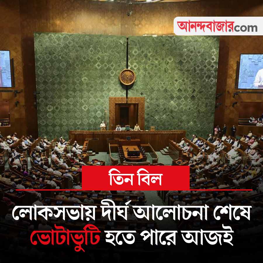 সংসদে তিন দিনের বিশেষ অধিবেশনে তিনটি বিল পাশ করাতে চাইছে কেন্দ্র। তিনটি বিল— মহিলা সংরক্ষণের জন্য ১৩১তম সংবিধান সংশোধনী বিল, লোকসভার সাংসদ সংখ্যা বাড়িয়ে ৮৫০ করার জন্য আসন পুনর্বিন্যাস বিল এবং কেন্দ্রশাসিত অঞ্চল আইন সংশোধনী বিল। বৃহস্পতিবার দুপুরে তিনটি বিলই লোকসভায় পেশ করা হয়েছে। প্রায় ১২ ঘণ্টা আলোচনার পরে আজ বিকেলে এই তিনটি বিলের উপর ভোটাভুটি হতে পারে সংসদের নিম্নকক্ষে।