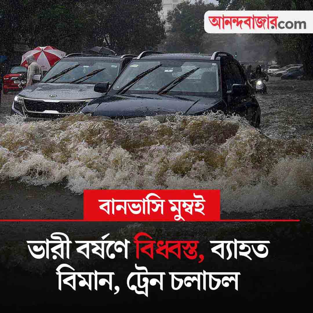 টানা বর্ষণে বিপর্যস্ত মুম্বইয়ের বিস্তীর্ণ এলাকা। বড় রাস্তা হোক বা অলিগলি— প্রায় সর্বত্রই জল থইথই। রেল পরিষেবাও ব্যাহত। মঙ্গলবার সন্ধ্যায় মুম্বইয়ে অন্তত দু’টি মনোরেল মাঝপথে বিকল হয়ে যায়। সব মিলিয়ে দুই ট্রেন থেকে প্রায় ৮০০ জনকে উদ্ধার করতে হিমশিম খেতে হয়েছে প্রশাসনকে। এর মধ্যে আবহাওয়া পরিবর্তনের সম্ভাবনাও কম। ফলে উদ্বেগ বাড়ছে। আজ এই খবরে নজর থাকবে।