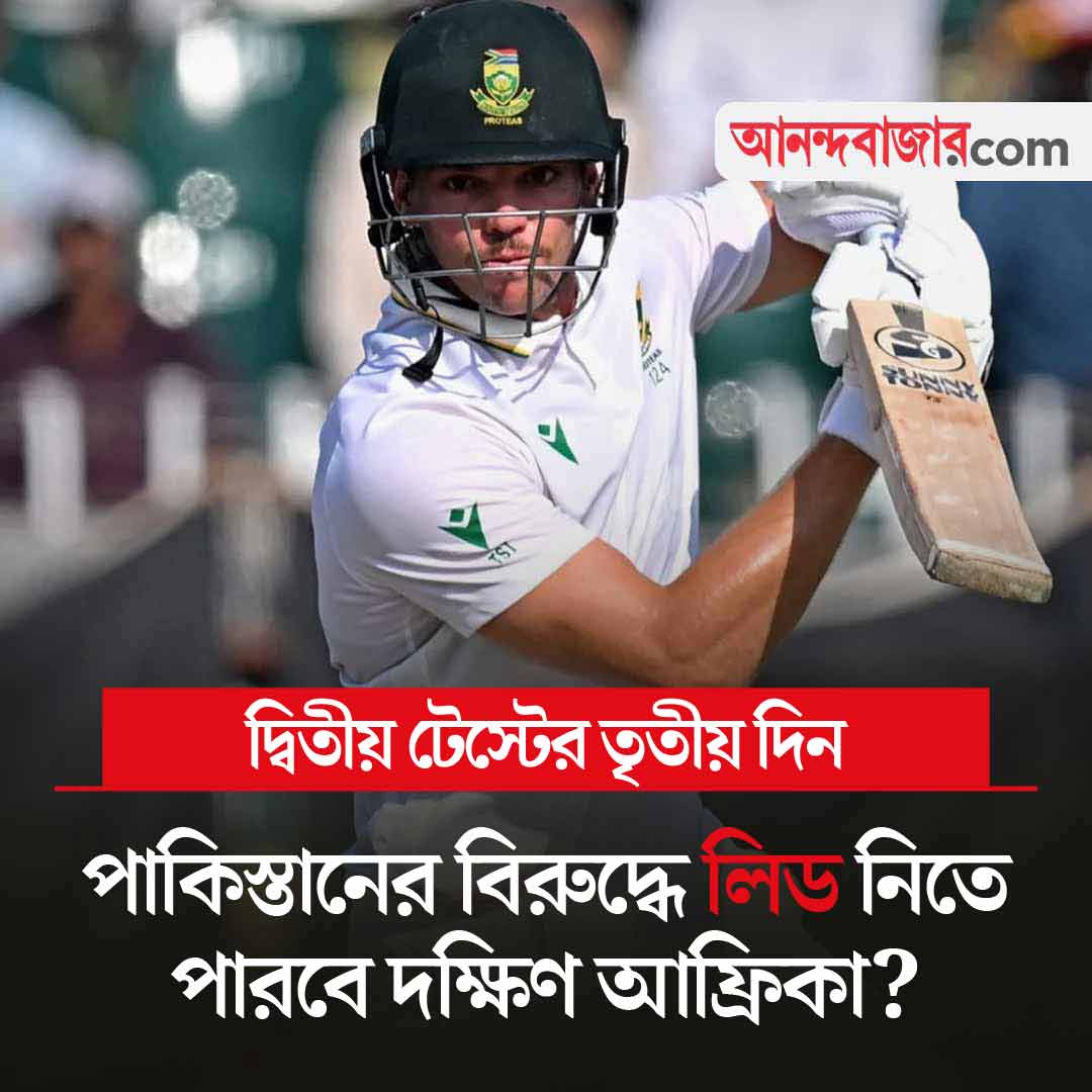 প্রথম টেস্টে হারায় চাপে টেস্ট বিশ্বকাপের বর্তমান চ্যাম্পিয়ন দক্ষিণ আফ্রিকা। রাওয়ালপিন্ডিতে পাকিস্তানের বিরুদ্ধে দ্বিতীয় টেস্ট খেলছে তারা। আজ তার তৃতীয় দিন। প্রথম ইনিংসে ৩৩৩ রান করেছে পাকিস্তান। আজ কি লিড নিতে পারবে দক্ষিণ আফ্রিকা? না কি পাকিস্তানের স্পিন আক্রমণের সামনে আবার খেই হারাবে দক্ষিণ আফ্রিকার ব্যাটিং? খেলা শুরু সকাল ১০:৩০ থেকে।