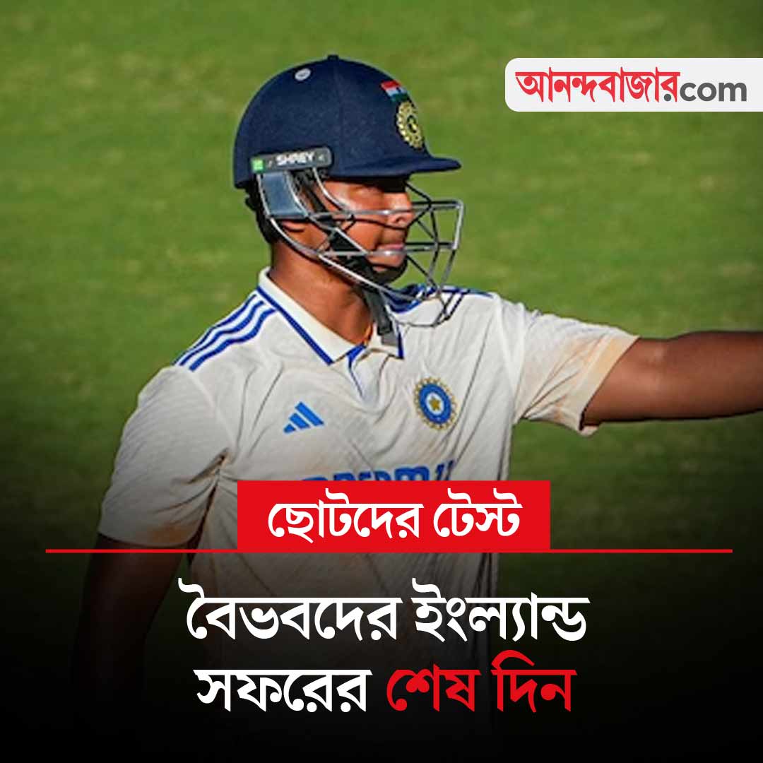 চলছে ভারত এবং ইংল্যান্ডের ছোটদের টেস্ট। চার দিনের ম্যাচের আজ শেষ দিন। এই ম্যাচে রান পায়নি ১৪ বছরের বৈভব সূর্যবংশী। প্রথম টেস্টের মতো এই টেস্টও ড্র হয়ে যেতে পারে। আজই শেষ হচ্ছে ভারতের অনূর্ধ্ব ১৯ দলের ইংল্যান্ড সফর। খেলা শুরু বিকেল ৩:৩০ থেকে।