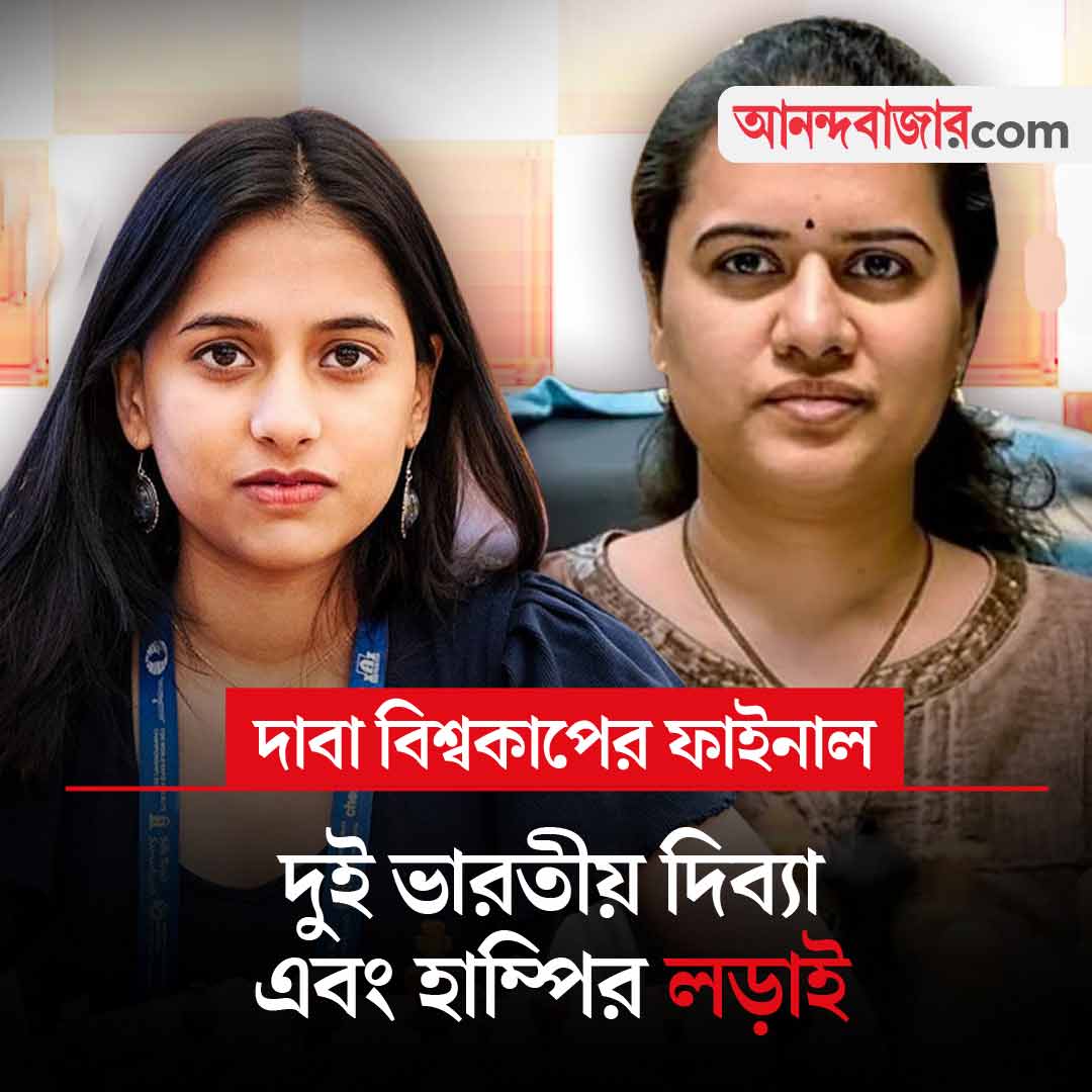 আজ থেকে শুরু হচ্ছে মহিলাদের দাবা বিশ্বকাপের ফাইনাল। এই প্রথম মহিলাদের বিশ্বচ্যাম্পিয়ন পাচ্ছে ভারত। ফাইনালে মুখোমুখি দুই ভারতীয় দিব্যা দেশমুখ ও কনেরু হাম্পি। ফাইনাল তো দূরের কথা, বিশ্ব দাবায় এর আগে সেমিফাইনালেও কোনও মহিলা ভারতীয় ওঠেননি। ইতিহাস তৈরি করা দুই ভারতীয়ের মধ্যে কার মাথায় উঠবে বিশ্ব চ্যাম্পিয়নের মুকুট? ফাইনালের প্রথম গেম আজ। খেলা শুরু বিকেল ৪:৩০ থেকে।