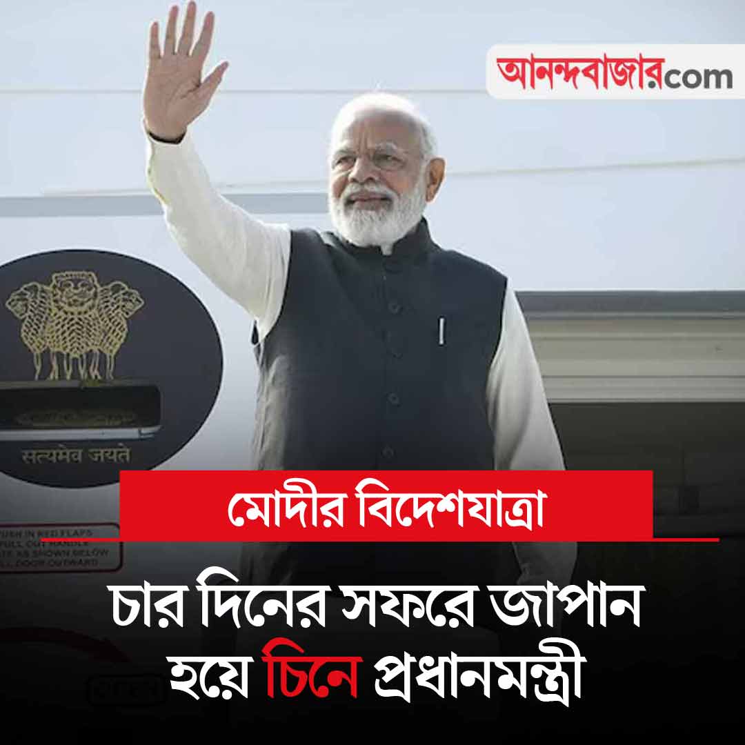 আজ থেকে শুরু হচ্ছে প্রধানমন্ত্রী নরেন্দ্র মোদীর চার দিনের বিদেশ সফর। প্রথমে দু’দিনের সফরে জাপান যাবেন তিনি। তার পরে যাবেন চিনে। আমেরিকার সঙ্গে কূটনৈতিক টানাপড়েনের মাঝে দুই সফর যথেষ্ট তাৎপর্যপূর্ণ। মোদীর জাপান-যাত্রার ঠিক আগেই ভারত প্রশান্ত মহাসাগরীয় অঞ্চলে শান্তি, নিরাপত্তা উন্নয়ন ও সমৃদ্ধি আনতে চতুর্দেশীয় অক্ষ ‘কোয়াড’কে আরও বেশি করে কাজে লাগানোর প্রস্তাব দিয়েছে নয়াদিল্লি। ঘটনাচক্রে, এই চতুর্দেশীয় জোটে ভারত, জাপান, অস্ট্রেলিয়ার পাশাপাশি রয়েছে আমেরিকাও। আবার উদ্ভূত কূটনৈতিক পরিস্থিতিতে ভারতকে কাছে টানার চেষ্টা করছে চিনও। মূলত সাংহাই কোঅপারেশন অর্গানাইজেশনের (এসসিও) সম্মেলনে যোগ দেওয়ার জন্য প্রধানমন্ত্রী চিনে গেলেও, ওই সফরে চিনা প্রেসিডেন্ট শি জিনপিংয়ের সঙ্গে দ্বিপাক্ষিক বৈঠকে বসার কথা রয়েছে তাঁর। আবার এসসিওর অন্যতম সদস্য রাষ্ট্র পাকিস্তানও। পাক প্রধানমন্ত্রী শাহবাগ শরিফেরও ওই সম্মেলনে থাকার কথা রয়েছে।