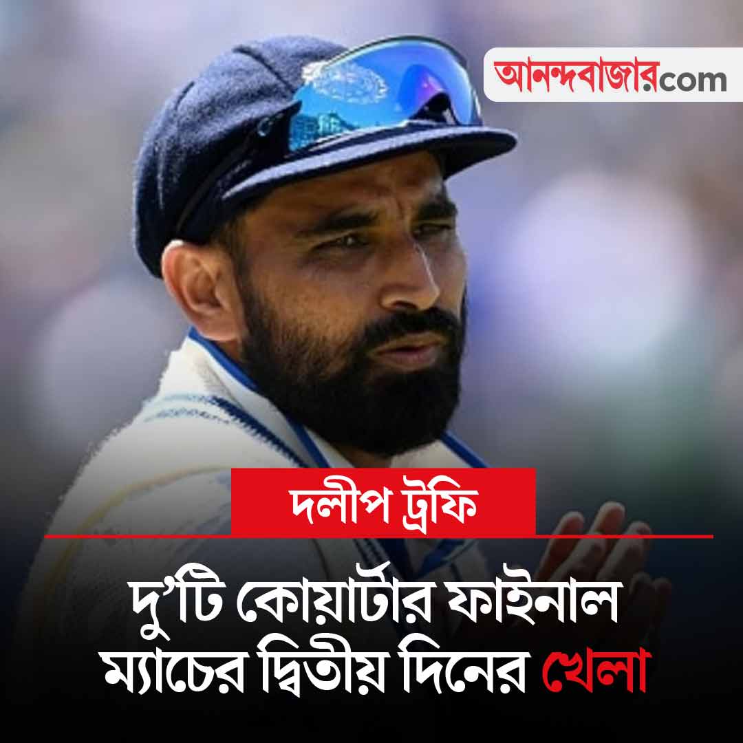 শুরু হয়ে গিয়েছে দলীপ ট্রফির দু’টি কোয়ার্টার ফাইনাল ম্যাচ। আজ দ্বিতীয় দিনের খেলা। পূর্বাঞ্চলের মুখোমুখি উত্তরাঞ্চল। এই ম্যাচে খেলছেন মহম্মদ শামি। অন্য ম্যাচে লড়াই মধ্যাঞ্চল ও উত্তরপূর্বাঞ্চলের। প্রথম দিনই শতরান করেছেন রজত পাটীদার। আজ খেলা শুরু সকাল ৯:৩০ থেকে। খেলা দেখা যাবে জিয়োহটস্টার অ্যাপে।