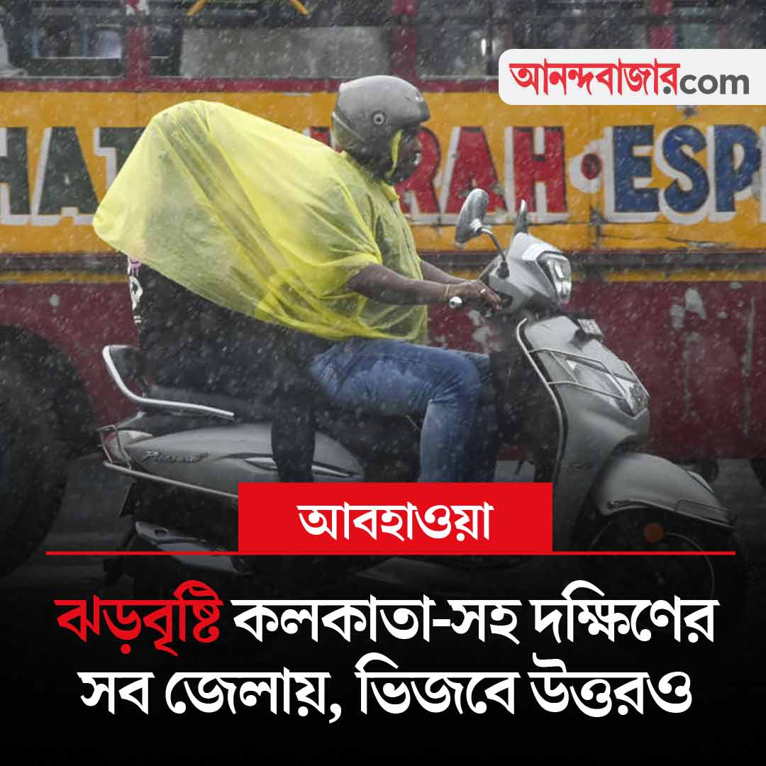 আজ কলকাতা-সহ দক্ষিণের সব জেলায় হালকা থেকে মাঝারি বৃষ্টির পাশাপাশি ঘণ্টায় ৩০ থেকে ৪০ কিলোমিটার গতিতে দমকা ঝোড়ো হাওয়া বইতে পারে। সে জন্য হলুদ সতর্কতা জারি করা হয়েছে। তবে কোথাও ভারী বৃষ্টির পূর্বাভাস নেই। উত্তরবঙ্গেও রয়েছে দুর্যোগের পূর্বাভাস। আজ আট জেলাতেই হলুদ সতর্কতা জারি করা হয়েছে। বৃষ্টির পাশাপাশি ঘণ্টায় ৩০ থেকে ৪০ কিলোমিটার গতিতে দমকা ঝোড়ো হাওয়া বইতে পারে। জলপাইগুড়ি, আলিপুরদুয়ার, কোচবিহারে হতে পারে ভারী (৭ থেকে ১১ সেন্টিমিটার) বৃষ্টি।