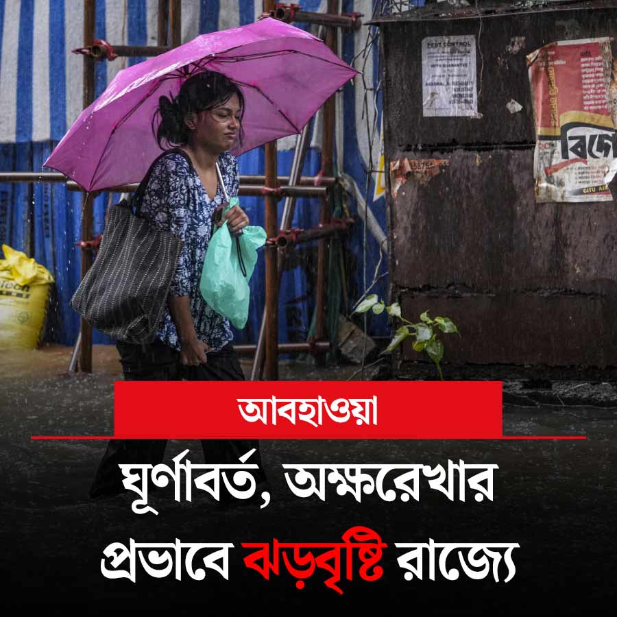 ঘূর্ণাবর্ত, অক্ষরেখা— এই জোড়া ফলায় রাজ্যে দুর্যোগ বৃদ্ধির সম্ভাবনা রয়েছে। বুধবার পর্যন্ত দক্ষিণের সব জেলায় ঝড়বৃষ্টির জন্য সতর্কতা জারি করা হয়েছে। উত্তরবঙ্গেও রয়েছে দুর্যোগের পূর্বাভাস। আজ হাওড়া, হুগলি, দক্ষিণ ২৪ পরগনা, পশ্চিম মেদিনীপুর, বাঁকুড়া, পশ্চিম বর্ধমানে হতে পারে ভারী (৭ থেকে ১১ সেন্টিমিটার) বৃষ্টি। বাকি জেলাতেও জারি সতর্কতা। বৃষ্টির পাশাপাশি সব জেলায় ঘণ্টায় ৩০ থেকে ৪০ কিলোমিটার গতিতে ঝড় বইতে পারে। আজ দার্জিলিং, জলপাইগুড়ি, উত্তর ও দক্ষিণ দিনাজপুর, মালদহে ঝড়বৃষ্টির জন্য হলুদ সতর্কতা জারি করা হয়েছে। বাকি জেলাতেও চলবে ঝড়বৃষ্টি। তবে সতর্কতা জারি করার মতো পরিস্থিতি তৈরি হয়নি।