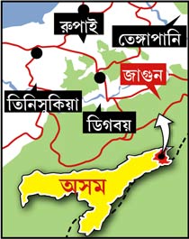 প্রজাতন্ত্র দিবসে নাশকতা ঘটাতে আলফা ও খাপলাং জঙ্গিরা অসমে ঢুকেছে বলে গোয়েন্দারা খবর পেয়েছিলেন। চলছিল অভিযান। গত কাল জানা যায়, তিনসুকিয়ার জাগুনে ঘাঁটি গেড়েছে জঙ্গিরা। ওই জেলার লাগোয়া অরুণাচলপ্রদেশের পাংসু পাসে চলছে উৎসব। সেখানে দেশ-বিদেশের পর্যটকের ভিড় জমেছে। অরুণাচলের ডিজিপি জয়রামপুরের ওই রাস্তা দিয়ে গত কাল বিকেলে ফিরেছেন। গিয়েছেন মন্ত্রী-বিধায়করা।