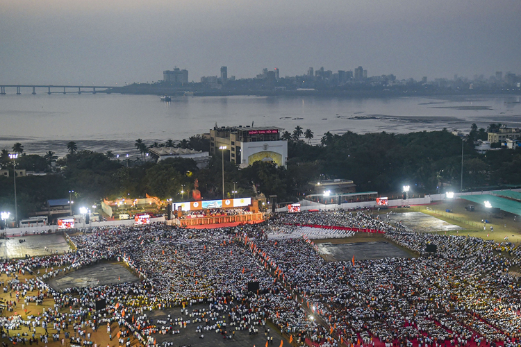 উদ্ধবের শপথ অনুষ্ঠানে ভিড় সাধারণ মানুষের। ছবি: পিটিআই।
