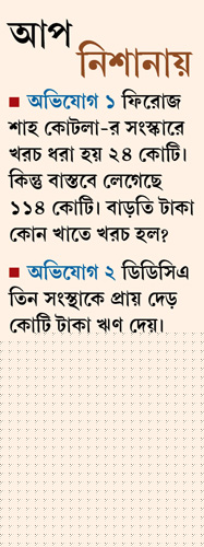 আপ শিবিরের অভিযোগ, দিল্লির ফিরোজ শাহ কোটলা স্টেডিয়ামটি সংস্কার করতে প্রথমে ২৪ কোটি টাকা ধার্য হয়েছিল। কিন্তু পরে মোট ১১৪ কোটি টাকা খরচ হয়। কী খাতে বাকি ৯০ কোটি খরচ হয়েছে, তা নিয়ে তদন্ত কমিটি প্রশ্ন তুলেছিল। আপ নেতা রাঘব চাড্ডা বলেন, ‘‘এ নিয়ে সরব কীর্তি আজাদকে জেটলি জানান, স্টেডিয়ামের মেরামতির কাজে মোট ৫৭ কোটি টাকা খরচ হয়েছে। যা দেওয়া হয়েছে ইপিআইএল নামের একটি রাষ্ট্রায়ত্ত সংস্থাকে। তা হলেও প্রশ্ন, বাকি ৫৭ কোটি গেল কোথায়?’’