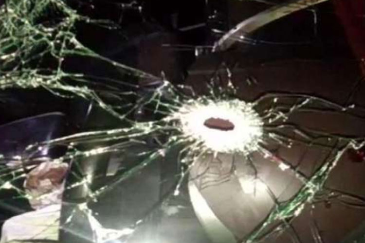 বিবেকের গাড়ির কাচে গুলির চিহ্ন।