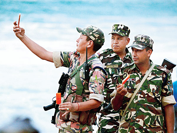 ভোটের কাজে এসে নিজস্বী তোলার হিড়িক। শুক্রবার কোভালামে। ছবি: পিটিআই।