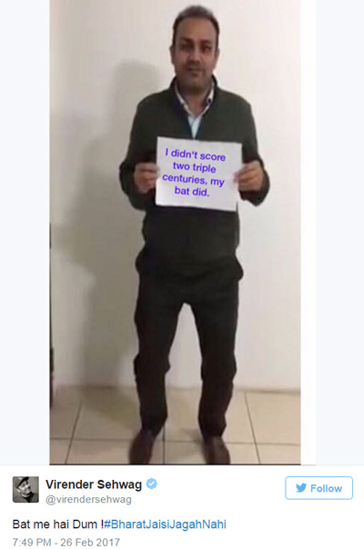 দেশে শান্তি বজায় রাখার এক প্রচারে কার্গিল শহিদ ক্যাপ্টেন মনদীপ সিংহের মেয়ে গুরমেহের কউর একটি ভিডিও পোস্ট করেছিলেন। সেখানে কাগজে লিখে নিজের বক্তব্য পেশ করেছিলেন তিনি। যার একটিতে লেখা ছিল, ‘‘পাকিস্তান আমার বাবাকে মারেনি। ‘যুদ্ধ’ তাঁকে মেরেছে।’’ বিতর্কের শুরু এই পোস্টকে ঘিরেই। ফেসবুকে রীতিমতো ট্রোলড হতে হচ্ছে তাঁকে। সোশ্যাল মিডিয়ায় ‘দেশপ্রেমীরা’ তো বটেই, ক্রিকেটার সহবাগ এবং অভিনেতা রণদীপ হুডাও তাঁকে ব্যঙ্গ করতে ছাড়েননি। প্ল্যাকার্ড হাতে একই স্টাইলে সহবাগ টুইট করেন, ‘‘দুটো ডবল সেঞ্চুরি আমি করিনি। আমার ব্যাট করেছে।’’ যার নীচে লেখা, ‘‘ব্যাট মে দম হ্যায়।’’ রণদীপ প্ল্যাকার্ড হাতে কোনও পোস্ট না করলেও সহবাগের এই পোস্টের প্রত্যুত্তরে হাততালির ইমোজি পোস্ট করেন তিনি।
