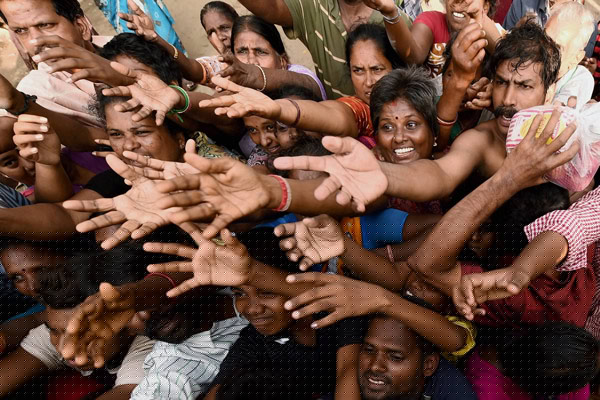 ত্রাণের জন্য হাহাকার। পিটিআইয়ের তোলা ছবি।