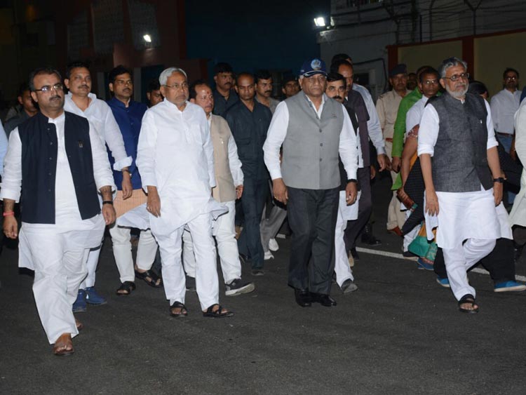 বিমানবন্দরে মুখ্যমন্ত্রী নীতীশ কুমার, উপমুখ্যমন্ত্রী সুশীল মোদী, বিদেশ মন্ত্রকের প্রতিমন্ত্রী ভি কে সিংহ।
