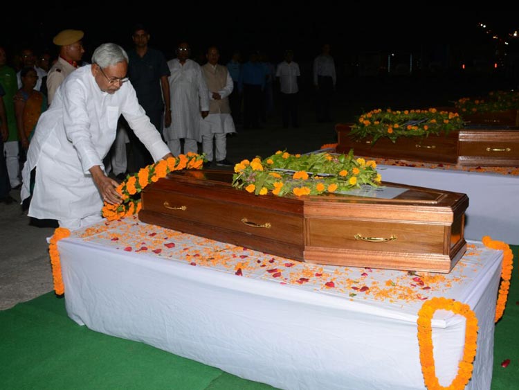 বিমান বন্দরে হাজির ছিলেন মুখ্যমন্ত্রী নীতীশ কুমার, উপমুখ্যমন্ত্রী সুশীল মোদী, রাজ্য পুলিশের ডিজি এবং মুখ্যসচিব। উপস্থিত ছিলেন রাজ্য মন্ত্রিসভার বেশির ভাগ সদস্য। বিমানবন্দরে মৃতদের পরিবারের সদস্যদেরও নিয়ে আসা হয়।