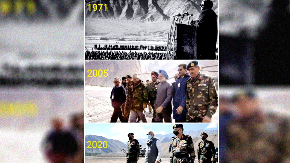 শনিবার এই তিনটি ছবির কোলাজ ফেসবুকে পোস্ট করেছেন কংগ্রেস সাংসদ শশী তারুর। পোস্টে কোলাজের ব্যাখ্যা দিয়েছেন এ ভাবে— ‘ ১৯৭১: লে-তে ইন্দিরা গাঁধী। এর পরেই পাকিস্তানকে দু’ভাগ করে দেয় ভারত। ২০০৫: লে-তে মনমোহন সিংহ। এই প্রথম সিয়াচেনে গেলেন কোনও ভারতীয় প্রধানমন্ত্রী। সিয়াচেন এখনও ভারতেরই দখলে। ২০২০: লে-তে নরেন্দ্র মোদী। এর পরে কী করবে ভারত? কোনও সিদ্ধান্ত নিয়ে পদক্ষেপ করবে নাকি, নিজেদের ভূখণ্ড ধরে রাখার চেষ্টা করবে?’ ফেসবুক