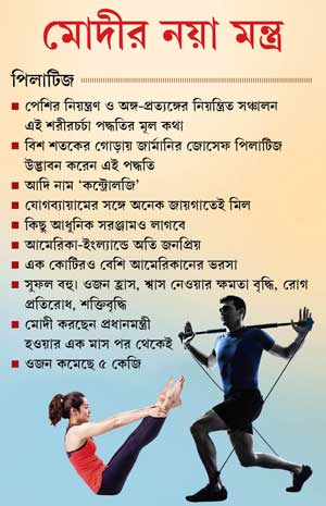 এটুকু শোনামাত্রই অনেকের মনে যোগগুরু রামদেবের ছবিটা উঁকি দিতে পারে! কারণ ইদানীং মোদী-রামদেব সখ্য সুবিদিত। কিন্তু রামদেবের পতঞ্জলি নয়, যে ঘরানা ও আদবে প্রধানমন্ত্রী ব্যায়াম করছেন, বিশ্বজুড়ে তা পরিচিত ‘পিলাটিজ’ পদ্ধতি নামে। বিশ শতকের গোড়ায় এই ফিটনেস পদ্ধতি উদ্ভাবন করেছিলেন জার্মানির জোসেফ পিলাটিজ। তিনি অবশ্য একে বলতেন ‘কন্ট্রোলজি’। কারণ, পেশির নিয়ন্ত্রণ ও বিভিন্ন অঙ্গ-প্রত্যঙ্গের নিয়ন্ত্রিত সঞ্চালনই এই প্রক্রিয়ার মূল কথা। কিছু আধুনিক সরঞ্জামও অবশ্য লাগবে। আমেরিকা-ইংল্যান্ডে এখন দুরন্ত জনপ্রিয় পিলাটিজ। এক কোটিরও বেশি আমেরিকান এই পদ্ধতিতে শরীরচর্চা করেন বলে পরিসংখ্যান জানাচ্ছে। আর বিশেষজ্ঞরা বলছেন, এক বার এই পিলাটিজ রপ্ত করতে পারলে সুফল মিলবে বহুমুখী। ওজন তো কমবেই, শ্বাস নেওয়ার ক্ষমতা বাড়বে, রোগের আক্রমণ প্রতিহত হবে, সব চেয়ে বড় কথা, শরীরের শক্তি বাড়বে।