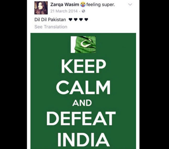 গত ২০১৪-তে ভারতের বিরুদ্ধে ক্রিকেট ম্যাচে পাকিস্তানকে সমর্থন করে ফেসবুকে পোস্ট করেন জাইরার মা জারকা ওয়াসিম। ২১ মার্চের সেই পোস্টের একটিতে লেখা ছিল, ‘কিপ কাম অ্যান্ড ডিফিট ইন্ডিয়া’। কিছু ক্ষণ পরে তা আপডেট করে জারকা ক্যাপশন দেন ‘দিল দিল পাকিস্তান’। ওই পোস্ট ঘিরে ফেসবুক-টুইটারে বিতর্ক তৈরি হতেই তা সরিয়ে নেন জারকা। মায়ের পাশাপাশি জাইরাকেও সমালোচনার মুখে পড়তে হয়। জারকার ওই পোস্ট ঘিরে একের পর এক কটু মন্তব্য ভেসে আসতে থাকে সোশ্যাল মিডিয়ায়।