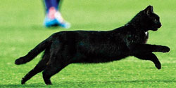 কিক অফ হওয়ার কিছুক্ষণের মধ্যেই ঘটে গেল ঘটনাটা। ঘাপটি মেরে থাকা কালো বেড়ালটা আচমকাই ঢুকে পড়ল ন্যু কাম্পে। তার পর মাঠে দে ছুট, দে ছুট। লা লিগার প্রথম ম্যাচ, তার গোড়াতেই কিনা কালো বেড়াল পথ কেটে দিল বার্সেলোনার! গত বারের মতো এ বারও কি ট্রফিহীন যাবে? আশঙ্কা ছিল বার্সা সমর্থকদের।
