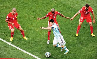 মারাদোনার বিশ্বকাপে বল প্লেয়াররা রেফারির অনেক নিরাপত্তা ভোগ করেছিলেন। সে বার মারাদোনার মতো এ বারের মেসি বা নেইমার কিন্তু সুরক্ষা পাচ্ছেন না। এমন মারছিল সুইসরা মেসিকে যে, এক বার নিজে হাত ঘুরিয়ে ডিফেন্ডারের মুখে মারলেন। মেসির মাথা গরম ফুটবল মাঠের বিরলতম ছবি আর সেটাই মঙ্গলবার ঘটছিল একাধিক বার।