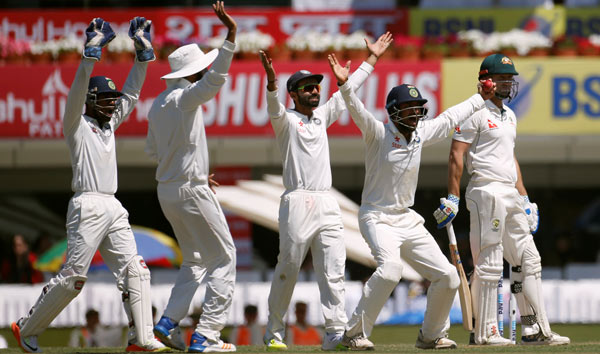 অস্ট্রেলিয়ার হয়ে ওপেন করতে নেমেছিলেন ম্যাট রেনশ ও ডেভিড ওয়ার্নার। কিন্তু বেশিক্ষণ ভরসা দিতে পারেননি দুই ওপেনার। ১৯ রানে ব্যাট করা ডেভিড ওয়ার্নার জাডেজার বলে তাঁকেই ক্যাচ দিয়ে ফেরেন প্যাভেলিয়নে। আর তখনই দলের হাল ধরতে নেমে পড়েন স্বয়ং অধিনায়ক। স্টিভকে ব্যাট হাতে কিছুক্ষণ সঙ্গ দিয়েছিলেন ওয়েনার রেনশ। কিন্তু ৪৪ রান করা রেনশকে ফেরান উমেশ যাদব। তাঁর বলে বিরাট কোহালিকে ক্যাচ তুলে দেন এই ওপেনার। এর পর নেমে শ্যন মার্শ মাত্র দু’রান করেই অশ্বিনের বলে পূজারাকে ক্যাচ দিয়ে চাপে ফেলে দেন অস্ট্রেলিয়াকে। ১৯ রানে উমেশ যাদবের বলে এলবিডব্লু হন হ্যান্ডসকম্ব। উল্টোদিকে তখন একাই অস্ট্রেলিয়া ইনিংসের যাবতীয় দায়িত্ব কাঁধে লড়ে চলেছেন স্বয়ং অধিনায়ক। শেষ পর্যন্ত যোগ্য সঙ্গত গ্লেন ম্যাক্সওয়েলের।