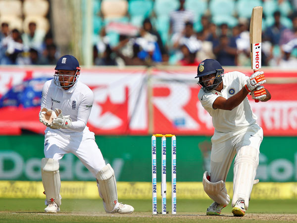 এ দিন সকালে দর্শক বিশাখাপত্তনমের স্টেডিয়াম ভরিয়েছিল বিরাটের ডাবল সেঞ্চুরি দেখবে বলে। শুরুটাও ভালই করেছিলেন ভিকে। পর পর দু’টি বাউন্ডারিতে আশায় বুক বাঁধতে শুরু করেন তামাম দর্শক। কিন্তু শেষ রক্ষা হল না। গত কালের সঙ্গে ১৬ রান যোগ করে মইন আলির একটি বল ড্রাইভ করতে গিয়ে স্লিপে ক্যাচ তুলে ফেরেন তিনি। বেশি ক্ষণ টেকেননি ঋদ্ধিমান, জাডেজাও। এর পরেই ৩৫১/৪ থেকে দ্রুত ৩৬৩/৭ হয়ে যায় ভারত। এর পরেই নবাগত জয়ন্ত যাদবের সঙ্গে হাল ধরেন অশ্বিন। অষ্টম উইকেটে ৬৪ রানে মূল্যবান পার্টনারশিপ করেন তাঁরা। স্টোকসের বলে আউট হওয়ার আগে ৫৮ রান করেন তিনি। তাঁকে যোগ্য সহায়তা করেন জয়ন্তও। জীবনের প্রথম টেস্ট ইনিংসে তাঁর অবদান ৩৫। শেষ দিকে কিছুটা ব্যাট চালিয়ে দলকে ৪৫০-র গণ্ডি পার করেন উমেশ যাদব এবং মহম্মদ শামি।
