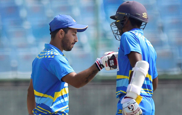 জবাবে ব্যাট করতে এসে নির্ধারিত ওভারে ২৮৮ রানেই শেষ হয়ে যায় ঝাড়খণ্ডের ইনিংস। দুই ওপেনারের কেউই দাঁড়াতে পারেননি। বিরাট সিংহ ২৪ ও প্রত্যুশ সিংহ ১১ রান করে ফিরে গেলে কুমার দেওব্রাত (৩৭) ও সৌরভ তিওয়ারি (৪৮) ঝাড়খণ্ডের ইনিংসকে কিছুটা ভরসা দেন। এর পর হাল ধরেন স্বয়ং ধোনি। সঙ্গে ইশাঙ্ক জাগ্গি। ধোনির ব্যাট থেকে আসে ৭০ রান। জাগ্গি খেলেন ৫৯ রানের ইনিংস। কিন্তু তার পর আর কেউই ঝাড়খণ্ডের ইনিংসকে এগিয়ে নিয়ে যেতে পারেননি। ৪১ রান বাকি থাকতেই শেষ বলে অল-আউট হয়ে যায় ঝাড়খণ্ড।