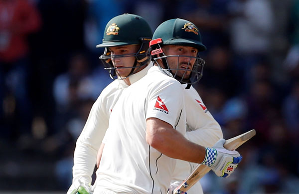 রাঁচী টেস্টে টস জিতে প্রথমে ব্যাট করার সিদ্ধান্ত নিয়েছিল অস্ট্রেলিয়া। প্রথমে ব্যাট করে অস্ট্রেলিয়ার প্রথম ইনিংস শেষ হয় ৪৫১ রানে। বল হাতে পুরো সিরিজেই দারুণ সফল রবীন্দ্র জাডেজা। প্রথম ইনিংস তাঁর পাঁচ উইকেট ও উমেশ যাদবের তিন উইকেটের সুবাদে অস্ট্রেলিয়া ইনিংসে জোড়া সেঞ্চুরি এলেও বড় রানের লক্ষ্যমাত্রা রাখতে পারেননি স্মিথরা। তাই জবাবে ব্যাট করতে নেমে বড় ইনিংস খেলে অস্ট্রেলিয়াকে চাপে ফেলার মতো অবস্থা তৈরিই করে ফেলেছিল বিরাট অ্যান্ড ব্রিগেড। দুই ওপেনার লোকেশ রাহুল ও মুরলী বিজয় শুরুটা ভালই করে দিয়েছিলেন। দু’জনের ৯১ রানের পার্টনারশিপের সৌজন্যে ভিতটা তৈরি হয়ে গিয়েছিল ভারতীয় ইনিংসের। এর পর হাল ধরেন চেতেশ্বর পূজারা ও ঋদ্ধিমান সাহা। লোকেশ রাহুল ৬৭ ও মুরলী বিজয় ৮২ রানে প্যাভেলিয়নে ফেরেন। চেতেশ্বর পূজারা প্রথম দিকে কোনও সাহায্য পাননি। মুরলী বিজয় আউট হওয়ার পর বিরাট কোহালি (৬), অজিঙ্ক রাহানে (১৪), করুণ নায়ার (২৩) ও রবিচন্দ্রন অশ্বিন (৩) ফিরে যান পর পর। এর পরে পূজারার সঙ্গে ময়দানে নামেন ঋদ্ধিমান। দু’জনের ব্যাটে জয়ের স্বপ্ন দেখতে শুরু করে ভারত। সঙ্গে সিরিজে এগিয়ে যাওয়ারও। পূজারা আউট হন ২০২ রানে। ঋদ্ধির রান ১১৭। রবীন্দ্র জাডেজার ব্যাট থেকে আসে অপরাজিত ৫৪ রান। ৬০৩/৯এ ইনিংস ঘোষণা করে বিরাট কোহালি।