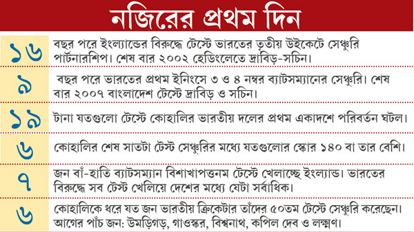 এ দিন অবশ্য আর একটা মাইলফলক ছুঁয়ে ফেললেন বিরাট। এই প্রথম কোনও ভারতীয় টেস্ট ক্যাপ্টেন একই ক্যালেন্ডার বছরে তিনটে দেড়শো প্লাস ইনিংস খেলে ফেললেন। আর কত রেকর্ড করবেন? এ বার তো বোধহয় সচিন রেকর্ড তেন্ডুলকরের মতো তাঁকেও বিরাট রেকর্ড কোহালি না বলতে হয়।