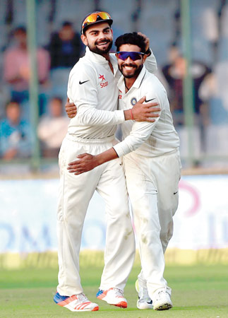 অশ্বিন ১৩.৩-৫-২৬-২, জাডেজা ১২-২-৩০-৫।