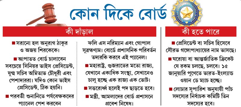 রোববার পর্যন্ত প্রশ্নটা ছিল বঙ্গদেশের। এ দিন দুপুরে সুপ্রিম কোর্টের রায়ের পরে প্রশ্নটা এখন গোটা ক্রিকেট-ভারতের। নতুন ক্রিকেট বোর্ড পরিচালনায় কি সৌরভ গঙ্গোপাধ্যায়কে দেখা যাবে? সে তিনি প্রেসিডেন্ট বা সেক্রেটারি যা-ই হোন না কেন!