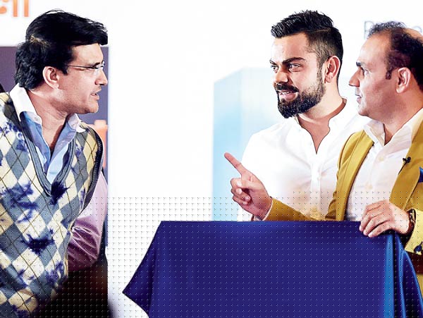 দিনের ধোনি ছিলেন একমুখী আবেগ। অপশনাল প্র্যাকটিসে বিরাট, যুবরাজ কেউ আসেননি। ধোনিকেও কারও সঙ্গে তাই আবেগের সিংহাসন ভাগাভাগি করে নিতে হয়নি। সন্ধের কোহালিকে কিন্তু সেই প্রতিদ্বন্দ্বিতায় পড়তে হয়। টিম হোটেলের অনুষ্ঠানে তাঁর পাশে যে দুই বসে থাকলেন, তাঁদের নাম সৌরভ গঙ্গোপাধ্যায় এবং বীরেন্দ্র সহবাগ। তাঁরাও ভারতীয় ক্রিকেটের সমান দাপুটে মহারথী।