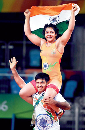 মহিলাদের কুস্তি? শুনতে আশ্চর্য লাগলেও সত্যি এটাই। এবং সেটাই হরিয়ানার সাবেক ইতিহাস। কিন্তু পরবর্তী কালে মেয়েদের কুস্তি করা-খেলাধুলো-চলাফেরা নিয়ে খাপ পঞ্চায়েত প্রতি পদে ভুরু কুঁচকেছে। একটা সময় যে মানসিকতার বিরুদ্ধে লড়তে হয়েছে সাক্ষীকেও। অলিম্পিক পদক কিন্তু তাই দিন বদলের স্বপ্নও দেখাচ্ছে। ইদানীং যে হরিয়ানা কন্যাভ্রূণ হত্যা, খাপ পঞ্চায়েত আর অনার কিলিং-এর জন্য বারবার লজ্জা কুড়িয়েছে, সেখানেই নারীশক্তির বিজ্ঞাপন হয়ে উঠতে চলেছেন সাক্ষী। সেটা এ দিন তাঁর বাড়ির সামনে দাঁড়িয়ে স্পষ্ট হয়ে গিয়েছে। সকাল থেকেই পঞ্চায়েতের নেতারা ভিড় করে এসে মিঠাই দিয়ে যাচ্ছেন। কংগ্রেস সাংসদ দীপেন্দ্র হুডা তো বাক্যহারা। বারবার বলছেন, ‘‘বলে বোঝাতে পারব না কী আনন্দ হচ্ছে। কাল রাত থেকে যেন পিকনিক চলছে!’’ রাজ্য সরকার আড়াই কোটি টাকা পুরস্কার এবং চাকরির ঘোষণা করেছে সাক্ষীর জন্য।