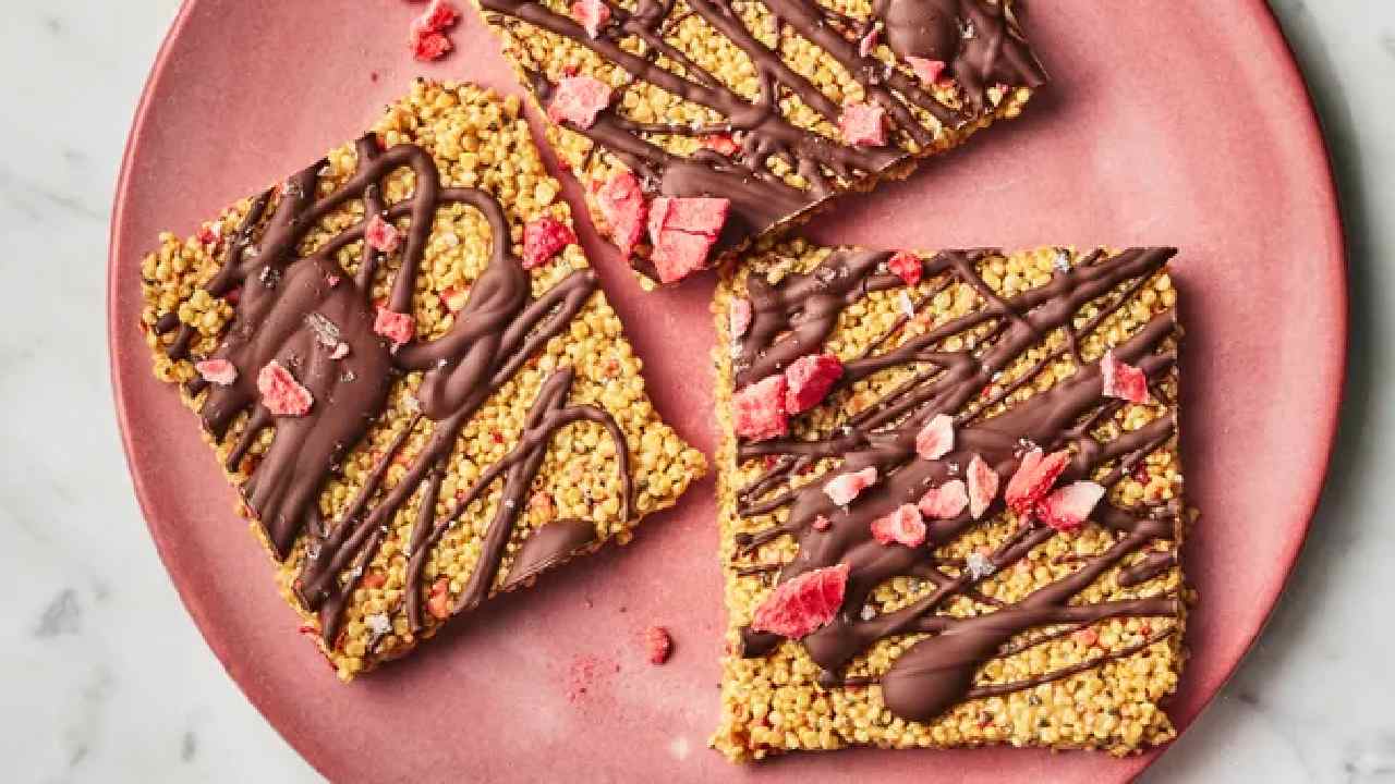 কিনোয়া ধুয়ে জল ঝরিয়ে শুকিয়ে নিন। গরম তাওয়ায় কিনোয়া দিয়ে হালকা নাড়াচাড়া করে নিন। কিনোয়ার দানা তাপে অল্প ফুলে উঠবে। কিনোয়ার সঙ্গে বাদামের মাখন মিশিয়ে একটি ট্রে-তে সমান ভাবে ছড়িয়ে দিন। উপর থেকে যোগ করুন তরল চকোলেট। ঠান্ডা হতে দিন। টুকরো করে কৌটো বন্দি করে রাখুন। যখন ইচ্ছা খাওয়া যাবে। কিনোয়াকে সুপার ফুড বলা হয়। ফাইবার তো আছেই, আছে জরুরি খনিজ। বাদামের মাখন প্রোটিনে ভরপুর। এতে চিনি ব্যবহার করা হয় না।