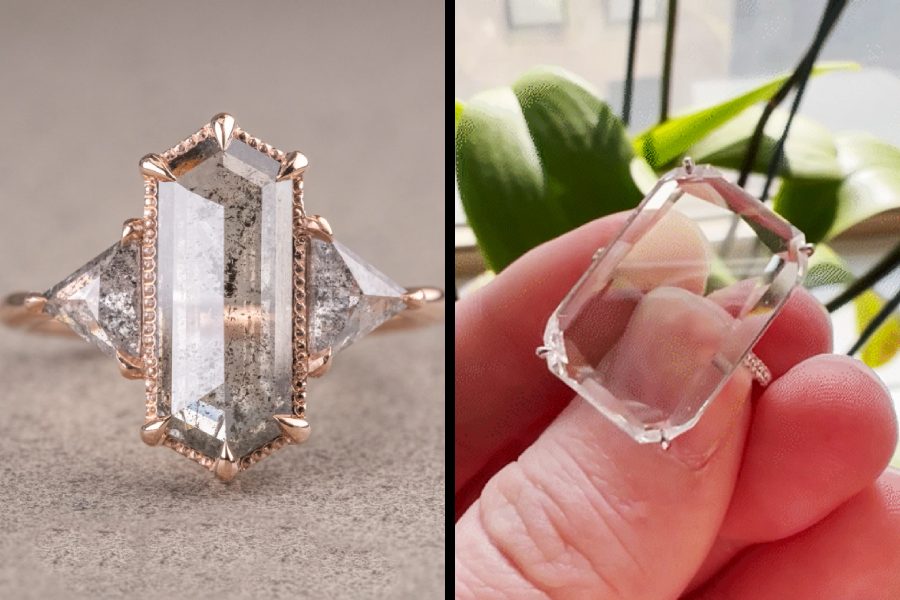 তবে তাঁরা না জানালেও বিভিন্ন সূত্র থেকে নানা রকম খবর পাওয়া যাচ্ছে। আর তাতেই জানা গিয়েছে, সামান্থার আংটিটি আসলে বিরল ধরনের ‘পোর্ট্রেট কাট’ হিরে। মাঝে রুইতনের আকৃতির পোর্ট্রেট কাট হিরের চার পাশে যে ফুলের পাপড়ির মতো আকৃতি তৈরি করা হয়েছে, তা নিয়ে দু’রকম মত জানা যাচ্ছে। এক, ওগুলি ছোট ছোট আনকাট হিরের আটটি টুকরো দিয়ে তৈরি। আবার কেউ বলছেন, ওগুলি ক্লিয়ার কাট কোয়ার্টজ় ক্রিস্টাল বা স্ফটিকের।