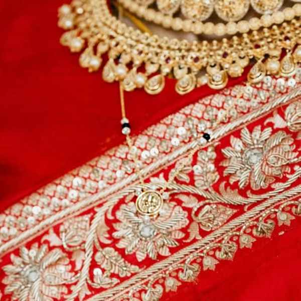 আর পাঁচটি ভারতীয় মেয়ে বিয়ের দিন যেটুকু সাজেন, দক্ষিণী অভিনেত্রী সামান্থা রুথ প্রভু সেটুকুও সাজেননি। ওড়নার আড়ালের নাটকীয়তা নেই। লাল রঙের উপর রুপোলি জরির কাজ করা যে বেনারসি শাড়িটি পরেছেন সামান্থা, সেটিও পরিচিত নকশারই। বাহুল্য নেই গয়নাতেও। তবে অল্প সাজের ওই ক্যানভাসে সমস্ত আলোটুকু কেড়ে নিয়েছে সামান্থার বিয়ের আংটি এবং তাঁর মঙ্গলসূত্র।