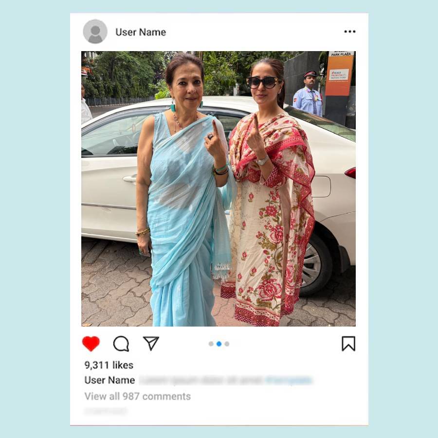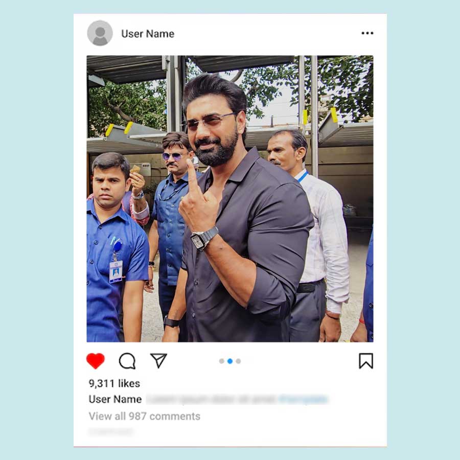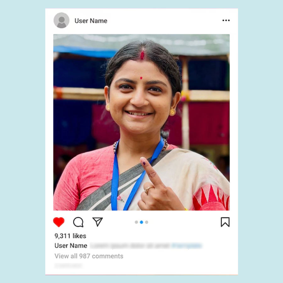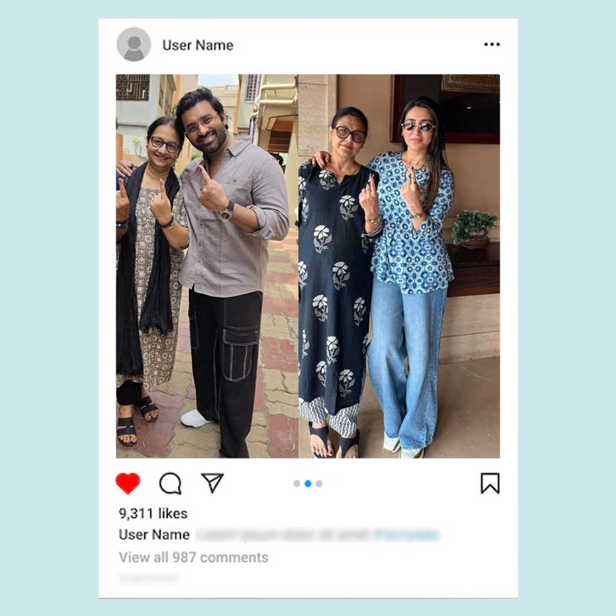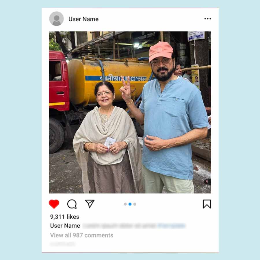 বাবা মায়ের সঙ্গে ভোট দিতে গিয়েছিলেন অঙ্কুশ হাজরা। ক্যাজ়ুয়াল সুতির শার্টের সঙ্গে কালো সিক্সপকেট কার্গো ট্রাউজ়ার্স পরেছিলেন অঙ্কুশ। হাতে ঘড়ি চোখে দৈনন্দিনের চশমা আর পায়ে স্নিকার্স পরা অঙ্কুশকেও একেবারেই নায়কোচিত দেখাচ্ছিল না। তবে নায়িকার মতো দেখতে লাগছিল ঐন্দ্রিলা সেনকে। তিনিও ভোট দিতে গিয়েছিলেন মায়ের সঙ্গে। পরেছিলেন আকাশি ঢিলা জিন্সের সঙ্গে আজরখ প্রিন্টের সুতির লম্বা হাতা টপ আর চোখে সরু সানগ্লাস। খোলা লম্বা চুলে পর্দার মতোই নিখুঁত দেখাচ্ছিল তাঁকে।