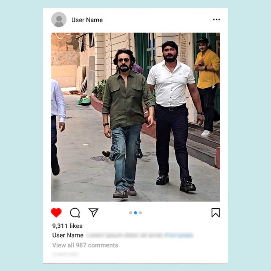 হাতা গোটানো পেস্তা রঙের লিনেন শার্টের সঙ্গে কালো ট্রাউজ়ার। হাতে স্মার্ট ওয়াচ, চোখে বাদামি রোদচশমা আর মাথায় কালো টুপি। সাজ সাধারণ। তবু গ্ল্যামারেই তারকাসুলভ ভাব লুকোতে পারলেন না জিৎ। স্ত্রী মোহনাকে সঙ্গে নিয়ে এসেছিলেন। তাঁকে দেখা গেল একটি মেরুন রঙের কুর্তা আর হালকা মেকআপে।